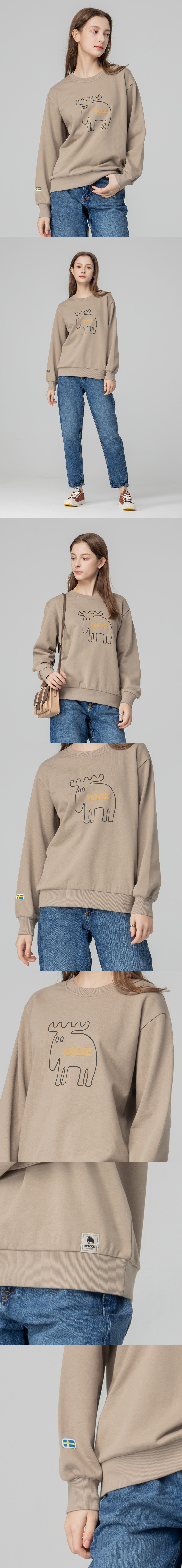 moz瑞典 立體發泡駝鹿 100%純棉 大學T -奶茶(亞洲版) 女款