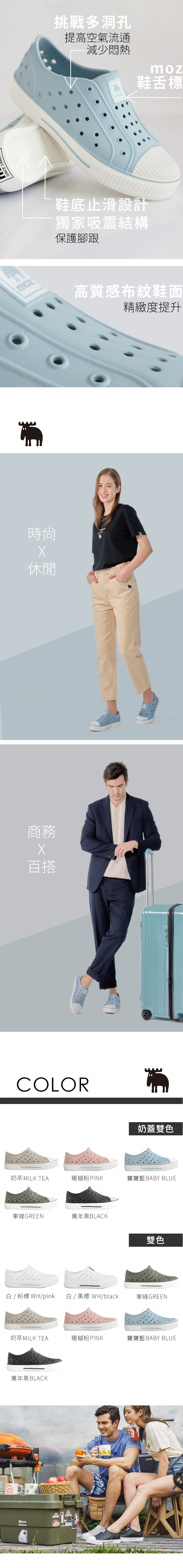 moz瑞典 駝鹿 雙色洞洞餅乾水鞋 (萬年黑) 全球首創 舒適厚底 防潑水+全防水